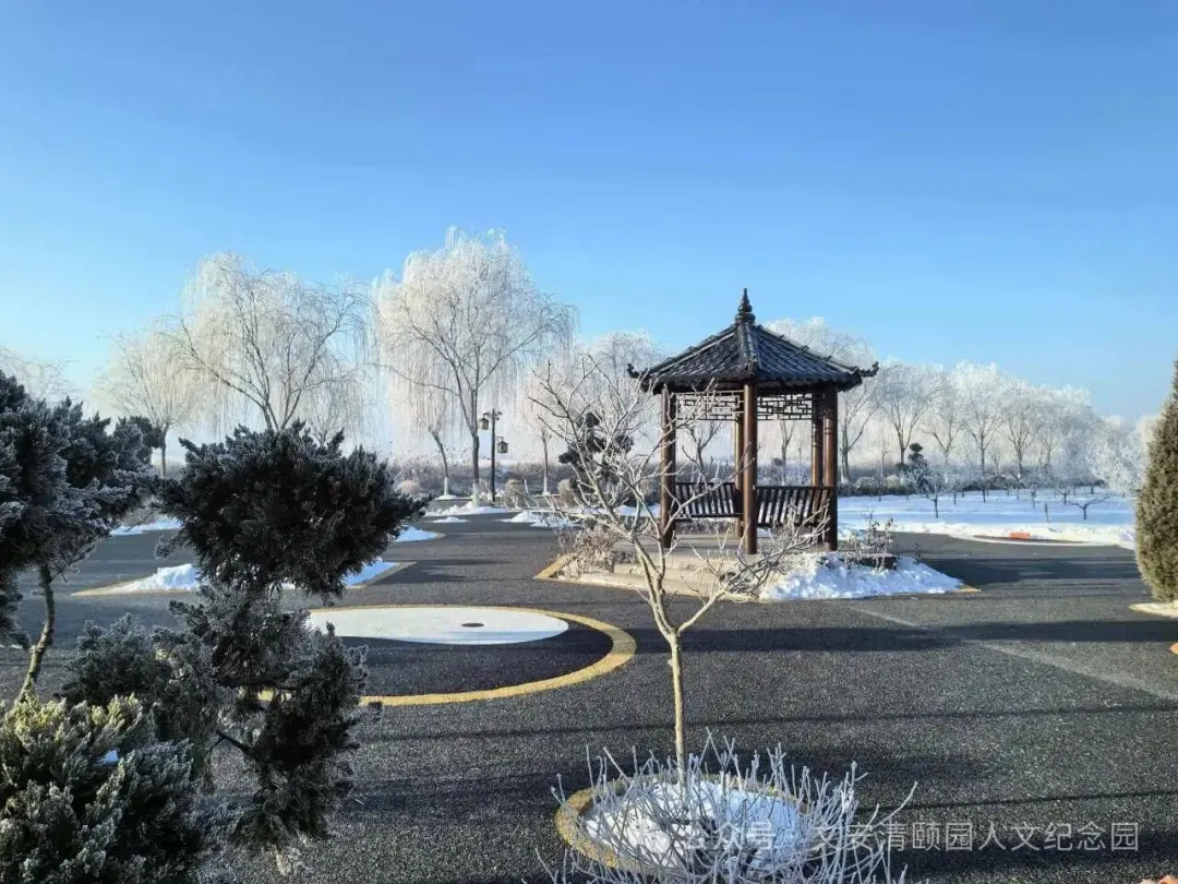 当朔风掠过园区的松柏,当霜华凝结成枝头的冰晶,冬日的陵园褪去了喧嚣,多了几分静谧与肃穆。寒雾轻笼着青石板路,两侧的常绿树依旧挺立,墨绿的枝叶间偶有残雪点缀,像一幅素净的水墨画,守护着这片安放思念的净土。