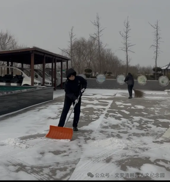 我们深知每一步走向墓碑的足迹,都承载着无尽的思念与惦念。雪势初歇,园区的工作人员便已整装出发,带着工具奔赴各个墓区。从主干道到墓道小径,从墓碑周边到休憩平台,工作人员逐区清扫、层层推进,不放过任何一处积雪结冰的角落。指尖被寒风冻得通红,额头却渗出细密的汗珠,他们用双手拨开积雪,为思念铺就一条安全通畅的归途。